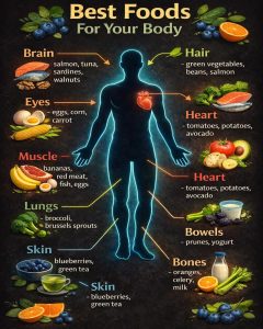 それぞれの臓器に、どの食べ物が効果的であるかとアドバイスをくれたイラストです