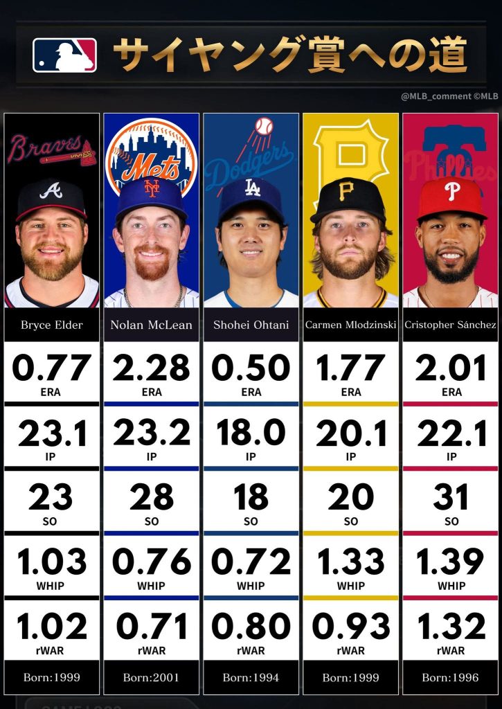 今シーズンはこれ迄3回の先発で、その全てで6回を投げきり、3試合でのERA(防御率)は0.50で、計18回投げ自責点1のみと言う素晴らしい投手成績を上げています❣️また、WHIP0.72と投球回1回当たりにランナーを0.72人しか出していない❗と言う超人的な数字を出してるんですね😵
